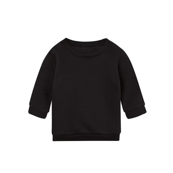 80% cotone (organico o in conversione), 20% poliestere riciclato, 280 g/m2. Felpa girocollo da neonato con interno felpato, maniche set-in, nastro di rinforzo al collo a contrasto. Girocollo, polsini e orlo a costine. Etichetta taglia removibile sul collo. Etichetta con istruzioni di lavaggio in cotone organico.