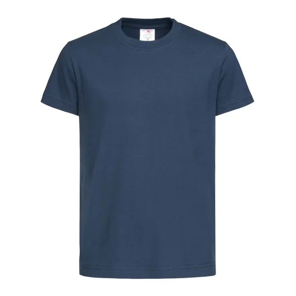 100% cotone certificato organico OCS. T-shirt girocollo da bambino con maniche corte, struttura tubolare, cuciture rinforzate sulle spalle. Col. GYH 85% cot. 15% visc.