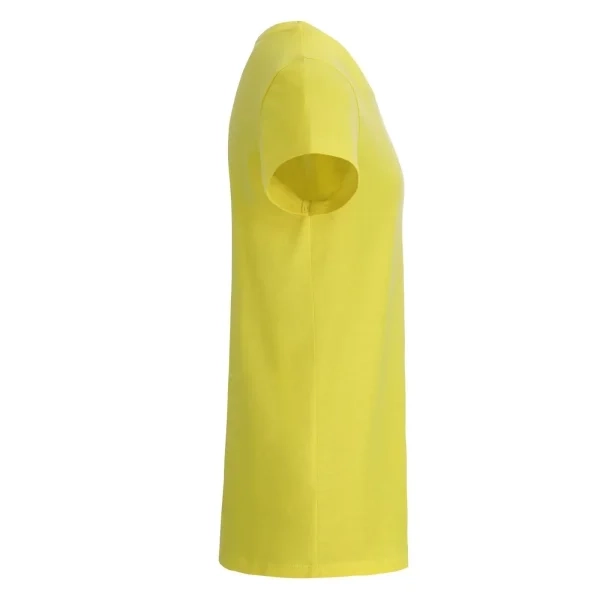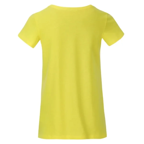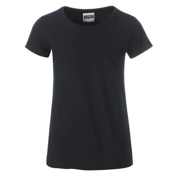 100% cotone organico. T-shirt classica da ragazza in single jersey, collo rotondo, polsini con elastane, leggermente sfiancata, etichetta removibile.