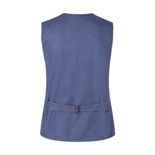 65% poliestere, 35% cotone (tessuto esterno), 100% poliestere (fodera). gilet da donna in Jeans, unisce lo stile urbano all´eleganza classica, cuciture trapuntate a contrasto, forma leggermente stretta in vita con pinces, elevata resistenza al lavaggio contro lo sporco più ostinato, cinta sul retro della vita regolabile mediante la fibbia, 4 bottoni a pressione sull´abbottonatura, 2 taschini a filetto laterali e 1 taschino sul petto.