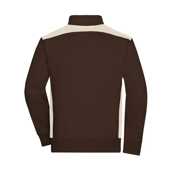 70% cotone, 30% poliestere. Felpa con maniche set-in, resistente, easy care, felpata internamente, inserti contrastanti ai lati e sulle spalle, costina in elastan su maniche e vita, 2 tasche laterali con cerniera nascosta, lavabile a 60°C, adatta ad asciugatrice, struttura con fasce laterali.