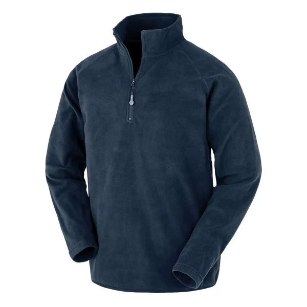 100% poliestere riciclato. Pile mezza zip, con zip YKK NATULON®Eco-Friendly, orlo e polsini elasticizzati, cuciture decorative, facile da lavare, asciugatura rapida, PFC free.